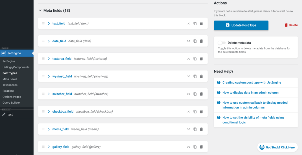 - In the Post Type drop-down, select the JetEngine post type created before.
